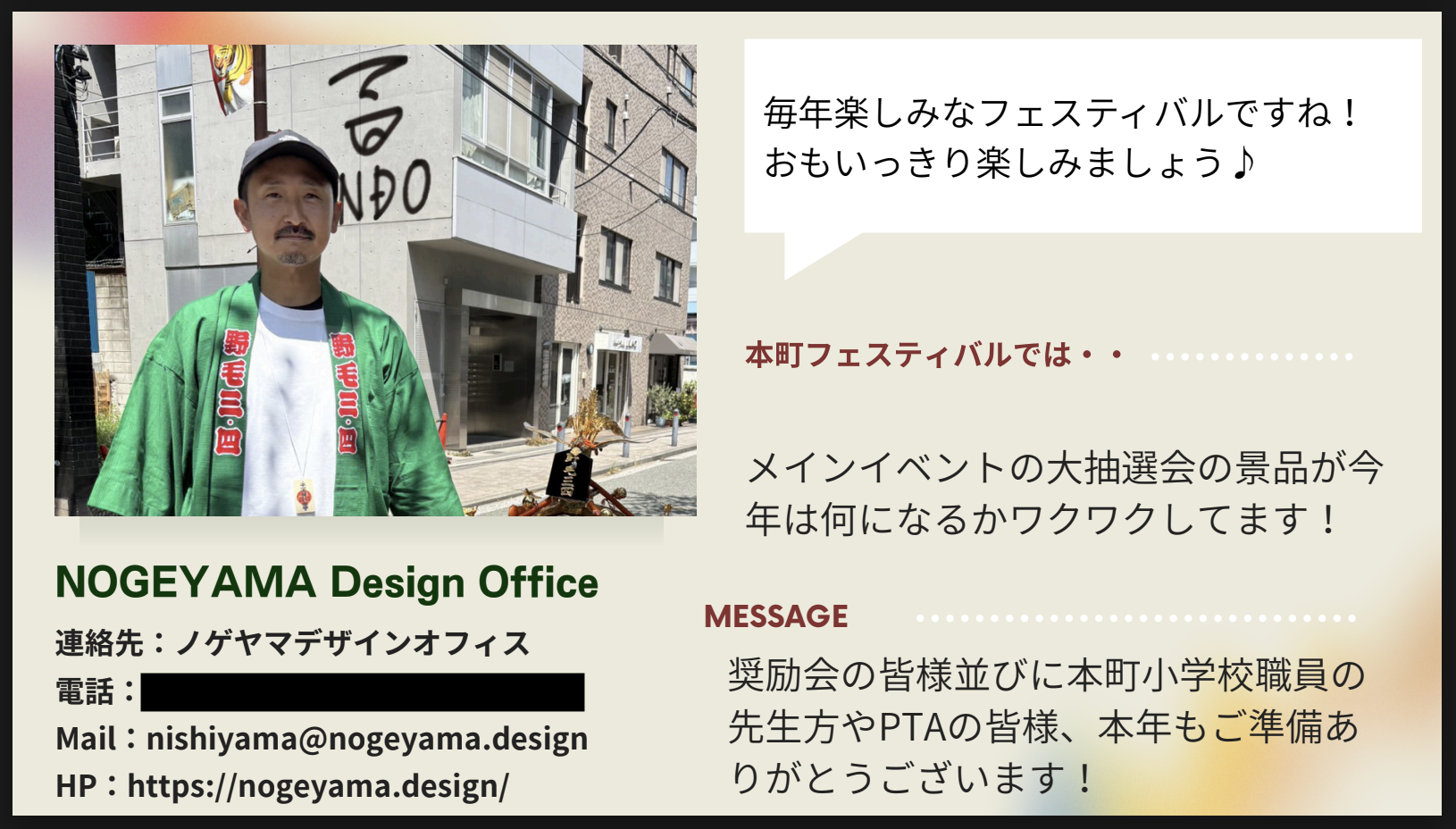 今回、本町フェスティバルに少額ながら協賛させて頂きました。